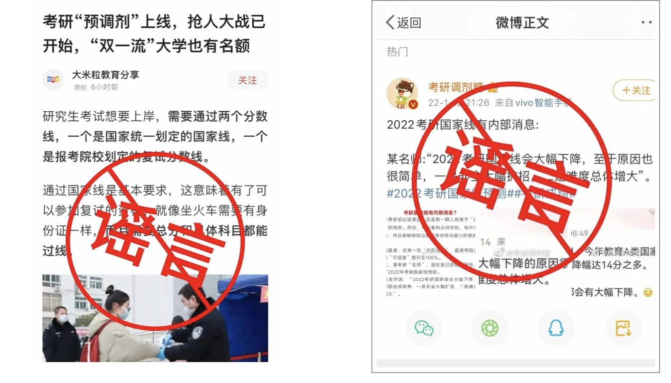 研招网及教育部列出了17个不实信息的标题及来源,具体如下: